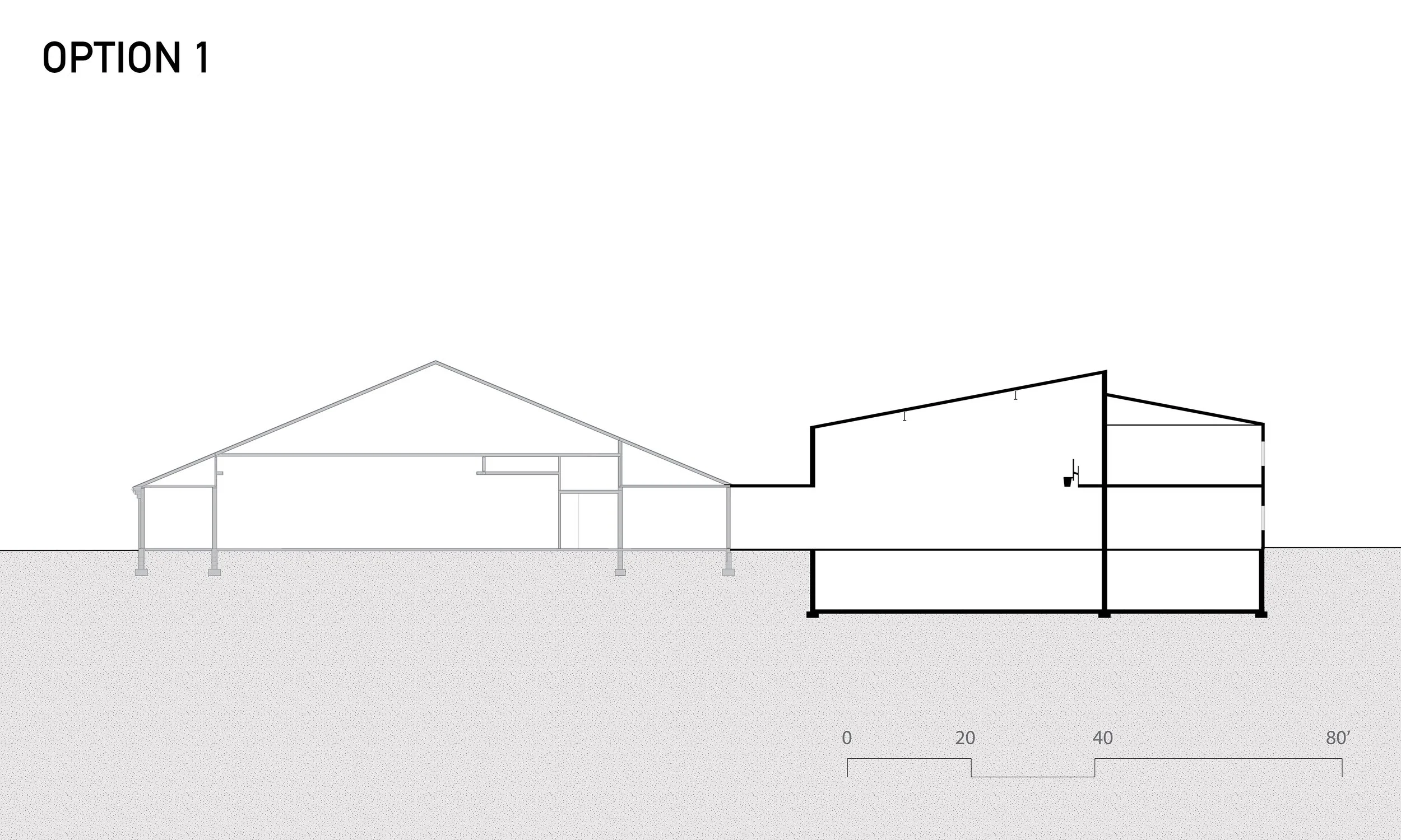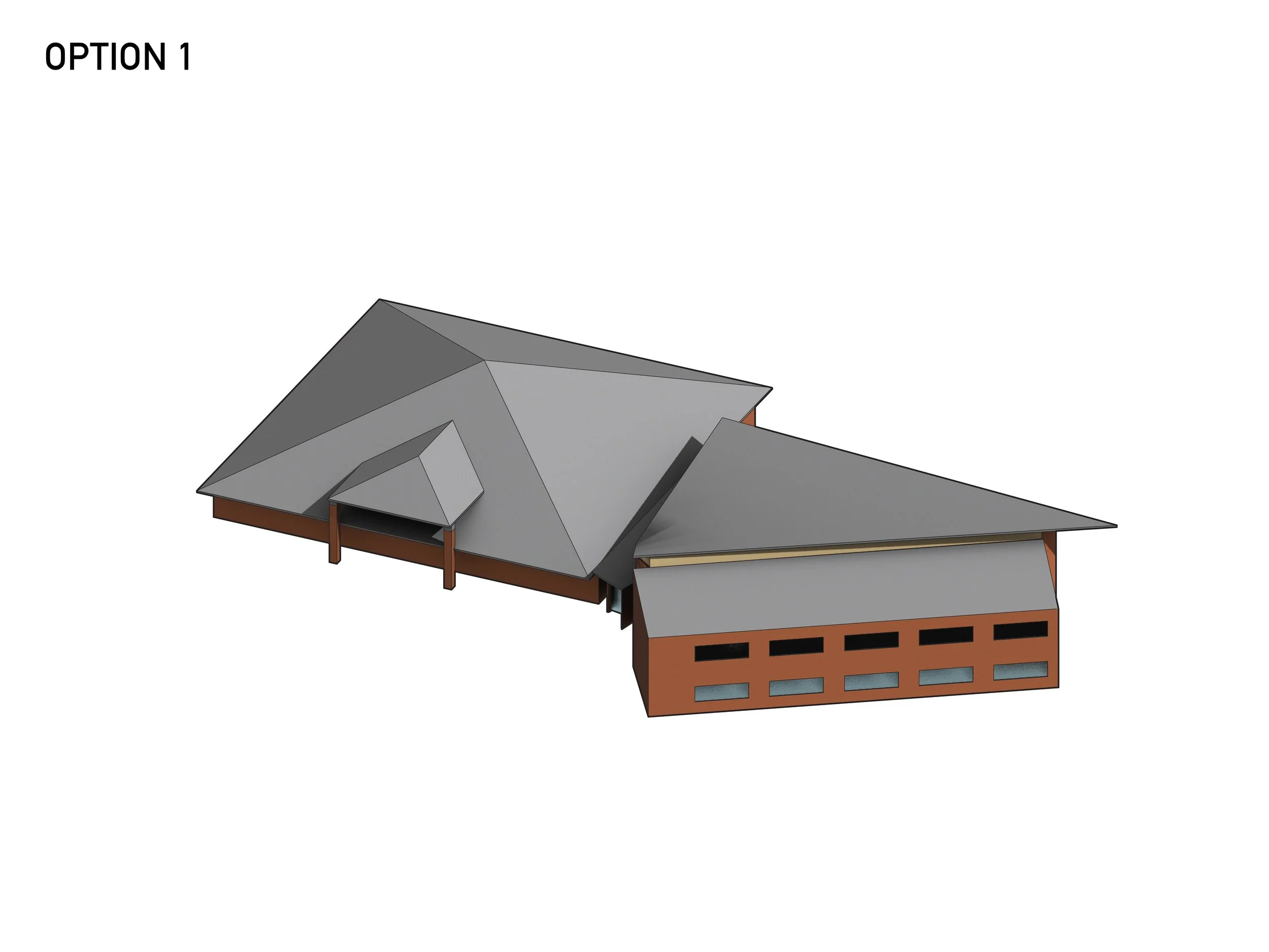 The design proposals take a simple and cost effective approach to match the existing building facade material with bricks, metal cladding and glass. Two design options were proposed to the church. The first is extending the existing lobby to disperse the crowd after Sunday service from the sanctuary hall into the multi-functional hall, passing the open kitchen where people can get their meal before gathering to eat and play sports. The second option is to create a new entrance outside of the sanctuary. This option creates pleasant pocket spaces for interaction outside of the sanctuary hall and a large two-story fellowship hall with garden-level classrooms below.