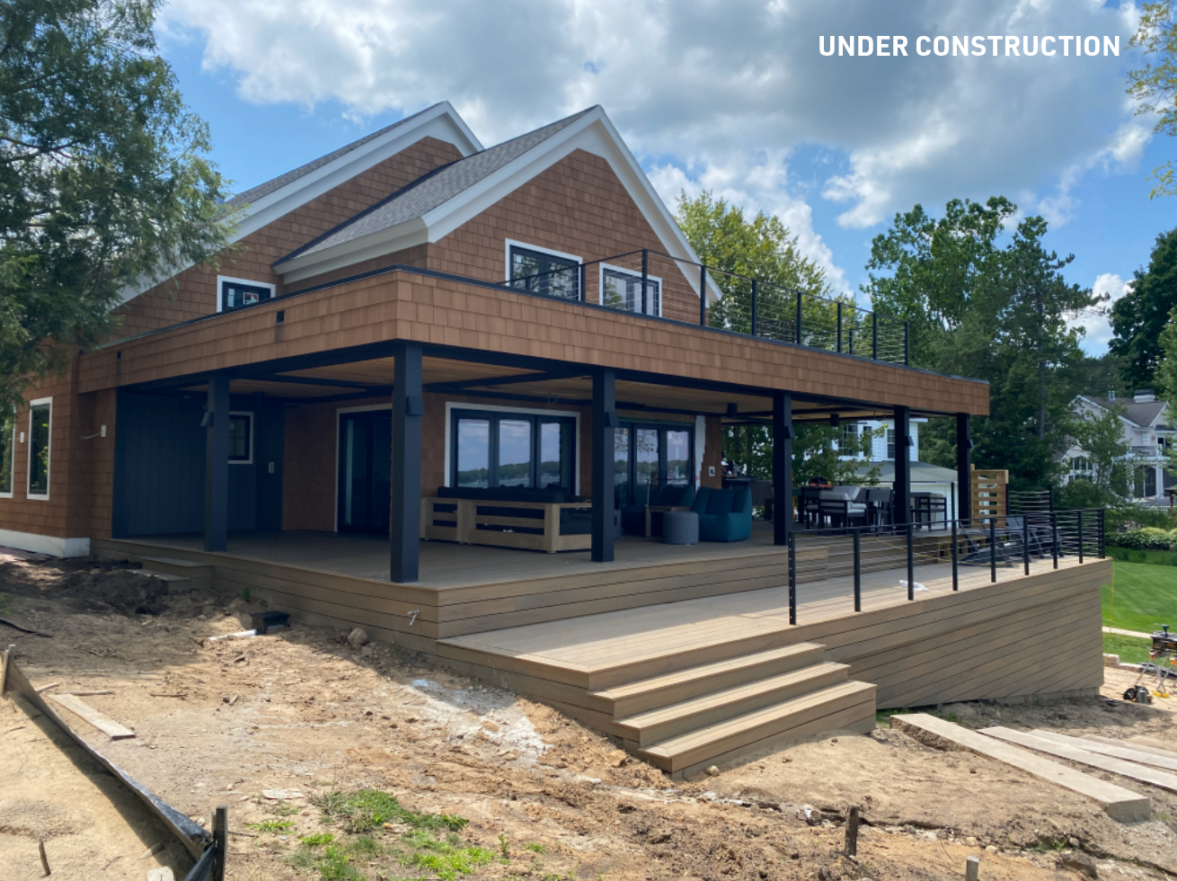 Lookout Porch is a renovation project currently under construction in Gun Lake, MI that extensively reconsiders the lakeside elevation of a West Michigan cottage, not as a hard edge between an interior and exterior, but rather as a deep and layered series of connective spaces between a lake and a house. What results from this reconsideration is a multi-level lakeside terrace that nests a gradient of covered and uncovered areas for recreation and relaxation, as well as additional functional zones for cooking and storage.