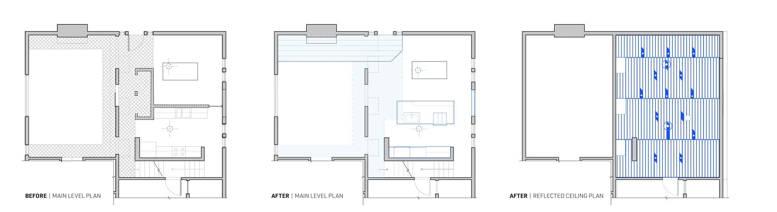 More Than a Kitchen is a renovation to a c.1940 home that combines disparate entry, dining, and kitchen spaces into a single open volume while resolving structural concerns with the existing roof. The new transformed space celebrates the home’s generous 18’ ceiling as a single uninterrupted plane, accentuating the rituals of the kitchen, dining, and entry areas with natural light, and materially expressive surfaces.