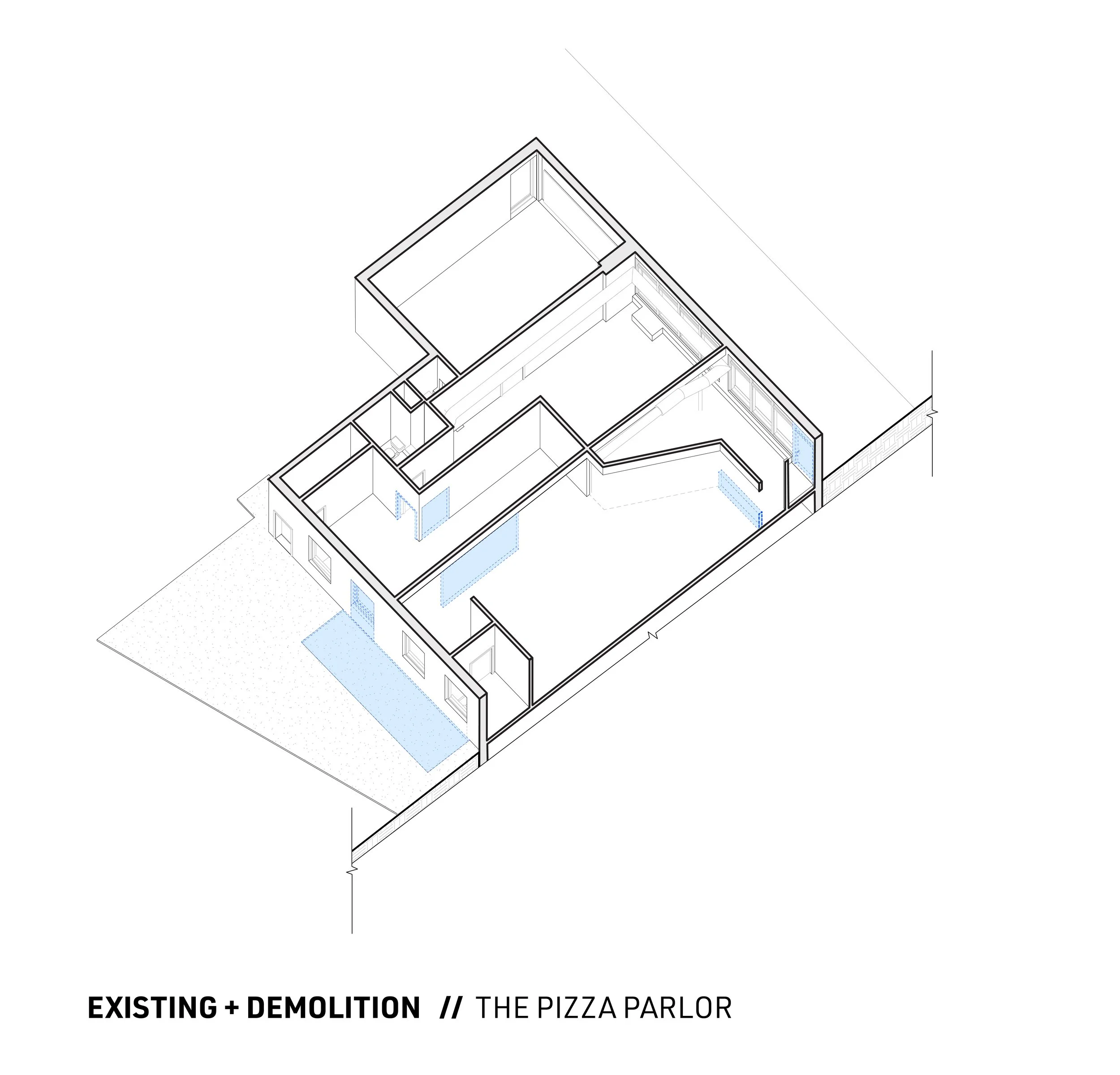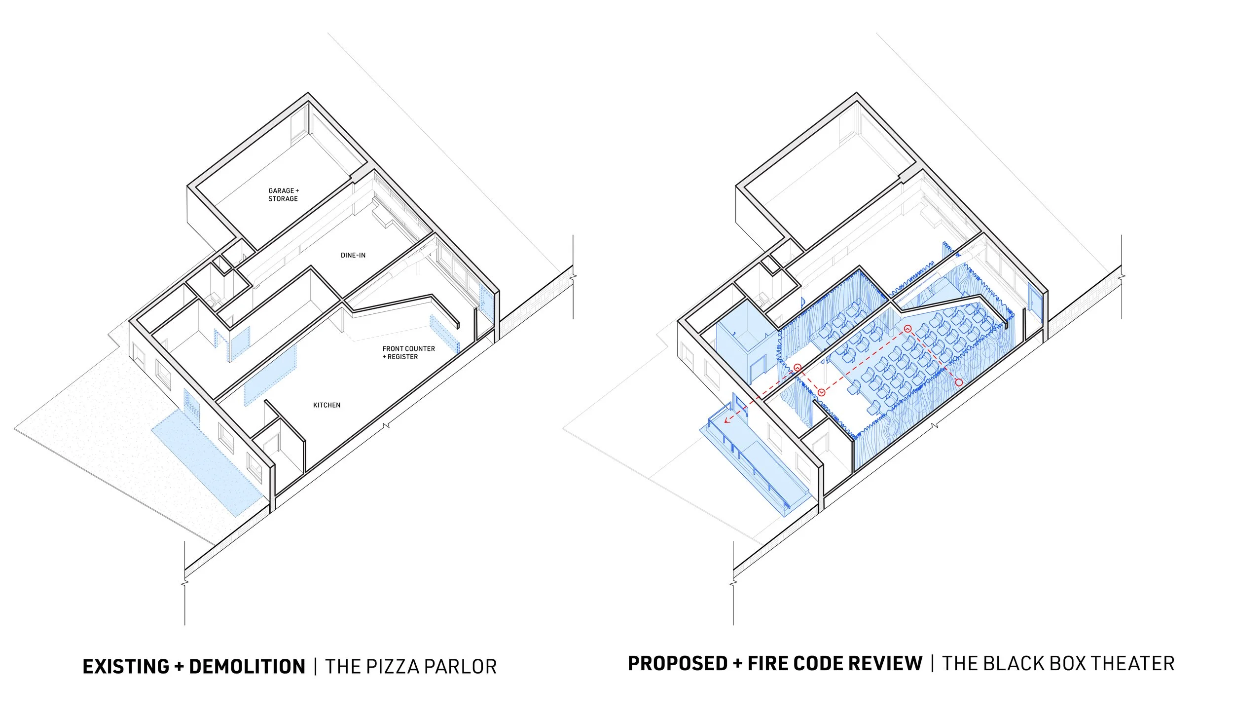 Dogstory Theater transforms a former pizza parlor in a 100+ year-old, historically contributing structure into a black-box theatre for a small community theatre company. Located within the Heritage Hill Historic District, the project required careful navigation of preservation concerns, building codes, and fire safety standards to adapt the aging structure for assembly use.